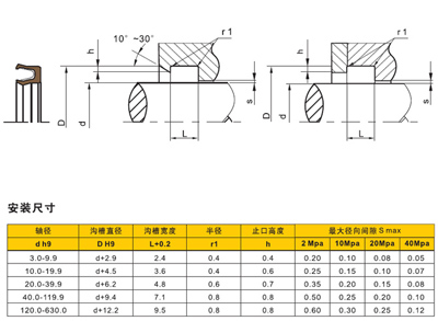 特点:由一个U型的PTFE密封圈内装特殊的V形不锈钢弹簧的孔用单向往复密封件。这种密封件可适用于恶劣的工况,也适用某些特殊介质的要求。 工况条件: 1.速度:15m/s 2.压力范围:0~45Mpa 3.温度范围:-55℃~+260℃ 4.介质:所有液体、化学制品和气体 5.材料:PTFE+不锈钢弹簧片