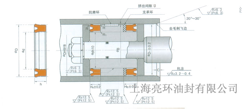 特征:这可用于活塞和活塞杆密封,此密封件有大的截面,可用于大范围的操作,使用的丁晴橡胶和氟橡胶材料可保证有广泛的工作温度范围,使用的规格广泛。