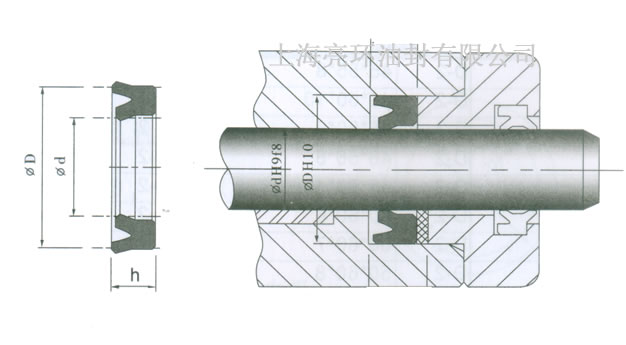 特征:D-2型活塞杆密封,它的形状为内侧唇口短而粗,也属于U型圈的一种,耐压程度可达到40Mpa,有很好的耐摩性.